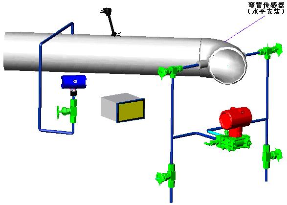 彎管流量計(jì)的一次傳感元件——彎管傳感器依安裝管線上的不同分為如下三種: